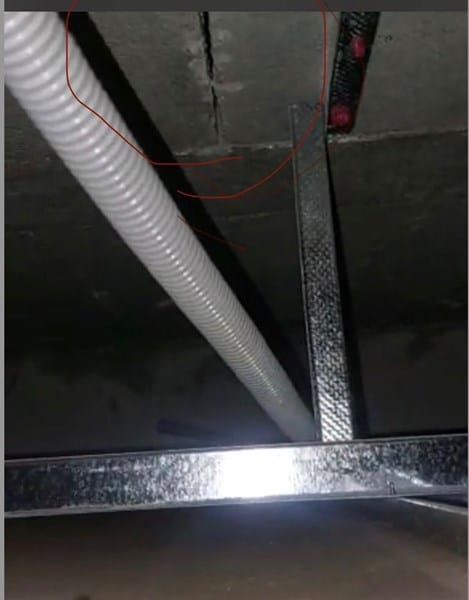 Vivo en un apartamento con vecinos arriba. Aprovechando que estábamos cambiando una lámpara hemos tomado un video de el espacio entre el entrepiso y el cielo falso de una de las habitaciones, y noto que hay una separación en uno de los bloques. Podría asumir que este mismo tema se puede repetir en otros bloques o laminas en el resto del apartamento. Me pregunto si esto es de algún modo peligroso o si bien podría ser un factor que ayude a que se propague el ruido del piso superior al mio. También supongo que la estructura metálica sin aislamiento no ayuda.