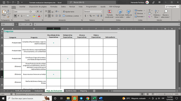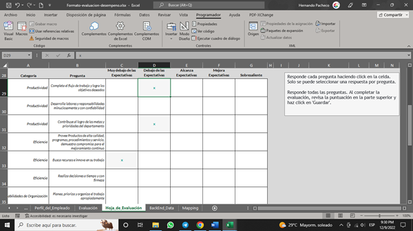 Como no quedó claro dónde ubicar el resultado, por ahora la macro coloca el texto en la col K de la misma fila, en la hoja de Evaluaciones.