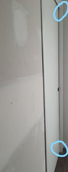 Recientemente me han instalado una puerta empotrada en la cocina, al cerrar e notado que golpea en la parte inferior del marco por el lado del pasillo y solo cierra si hago fuerza a la puerta para que acabe de entrar, me da la sensación que la puerta esta algo inclinada. Me gustaría saber que arreglos puede tener este descuadre