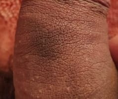 Infección relacionada con un hongo -sobre todo- o bacteria, por ejemplo 'molusco' contagioso, (infección por este tipo de hongo), es una enfermedad de transmisión sexual muy común que no reviste gravedad alguna pero que normalmente debe tratarse con medicación específica, si o deseas aqui puedes ver un caso creo muy similar tratado por un compañero,