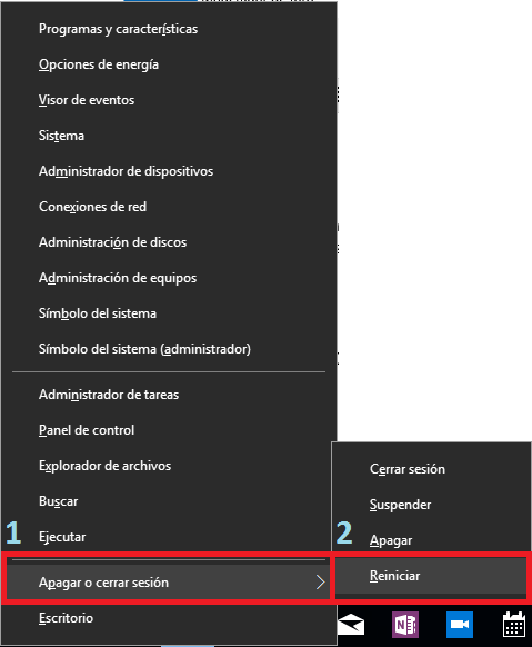 5. Reinicia tu equipo para aplicar los cambios, con las siguientes instrucciones: