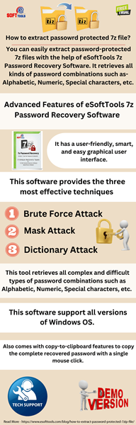 ESoftTools 7z Password Unlocker Software is the most trustworthy software and quickly recovers lost 7z file passwords with the best technology-based three methods like Mask Attack, Brute Force Attack, and Dictionary Attack. This software comes with GUI and a free demo version, in the free demo, it provides users with some tool-based technology knowledge, and users get starting three letters of the 7z file password and also provide 24x7 technical support.