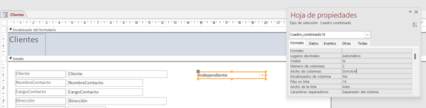 Tengo una Base de Datos en Access. En una tabla tengo un campo combo de dos columnas como se ve en la imagen no 1. De esta tabla tengo una consulta donde puedo ver el mismo campo en dos columnas. En el informe necesito que se vean las dos columnas, pero solo se ve una: ¿Cómo hago para ver en el informe las dos columnas?