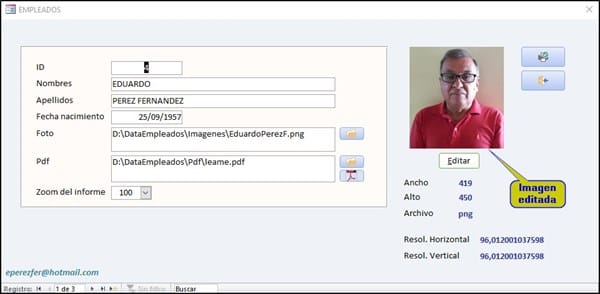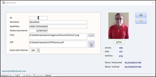 Por ahora le muestro un ejemplo. Tengo este formulario de empleados con su foto y archivo PDF con la hoja de vida