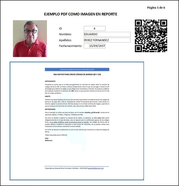 Observe que son 6 páginas porque es el número de páginas que contiene el PDF incrustado en el informe.