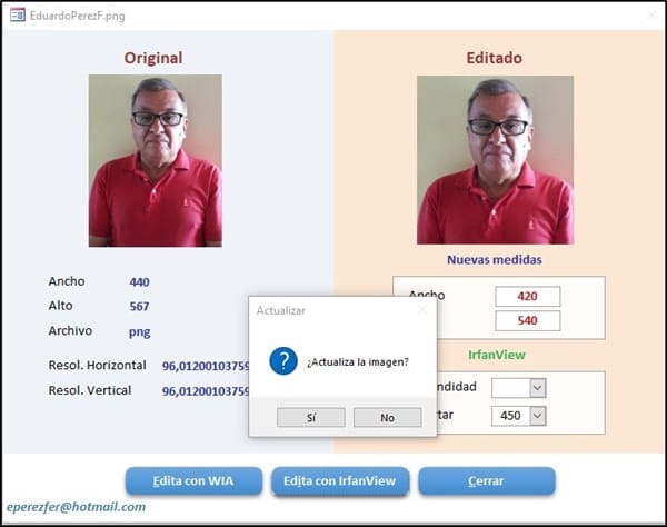 En este caso hago clic en Sí para aceptar la nueva imagen. Al cerrar el formulario me regresa al formulario principal.