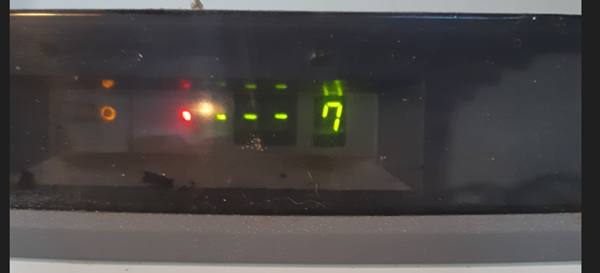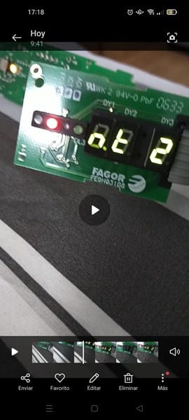 esto es lo que marca ahora el display, como ves me marca la temperatura que corresponde al frigo y los leds del congelador ,punto rojo y los 3 leds verdes. ahora que tendría que mirar?.