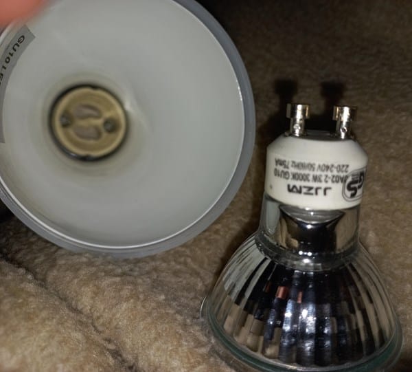 La lampara es practicamente nueva pero fuera de garantia. La bombilla esta bien pero baila en el casquillo. De rosca GU10. El casquillo esta firmemente atornillado. Aunque intente apretar la bombilla no hay mas vuelta que dar... Si toco la bombilla hay un momento que hace buena conexion e ilumina bien. Pero enseguida vuelve a parpadear e incluso apagarse por mal contacto...