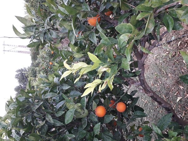 En la parcela dónde resido hay una plantación de 110 naranjos: hace un par de meses se secaron las hojas de algunas ramas, casi siempre de la parte alta, y también algunas hojas (pero en este caso en mucha menor medida) se pusieron amarillas, con los nervios verdes.