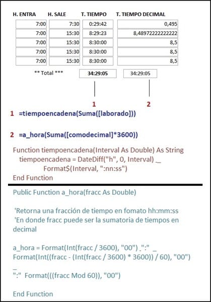 Opción B: =Suma([Horafinalsalida]-[Horafinalentrada])