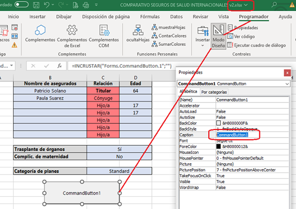 Hace años no uso macros y estoy en una disyuntiva. En la hoja de datos en la celda C25 está el tipo de plan y el botón que he diseñado, captura ese dato y guarda el PDF de la pestaña del documento con el mismo nombre. Tampoco me permite cambiar el nombre del botón a COTIZAR.