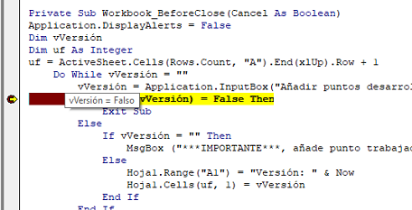 Funciona todo bien salvo el botón cancelar del inputBox que al pulsarlo me devuelve falso y quería que al pulsarlo no haga nada solo cierre el libro.