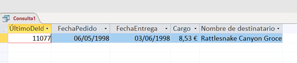Busco una forma de obtener solamente el ultimo registro en una consulta, definiendo el numero mayor en un campo numérico autoincrementado. Por básico que parezca lo he investigado e intentado y siempre obtengo el listado de todos los registros.