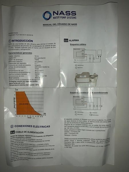 Tengo una bomba de condensados de la marca nass, y no sé conectarla eléctricamente,