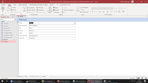 Relación de tablas con pestañas Access