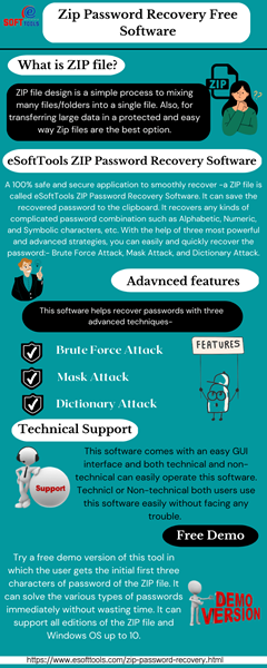 One of the best ZIP file password recovery software names is eSoftTools ZIP Password Recovery Software. It can recover all kinds of complex password combinations such as Alphabetic, Numeric, Symbolic characters, etc. This software has three most powerful strategies to unlock ZIP file Brute Force Attack, Mask Attack, and Dictionary Attack. This software gives you free demo versions.