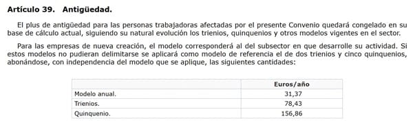 Cuanto se cobra por trienio en el convenio de química?