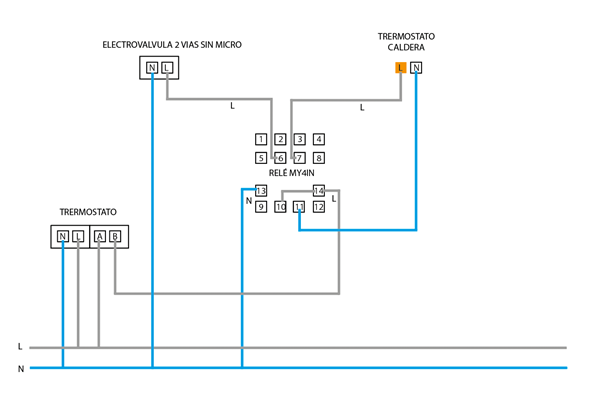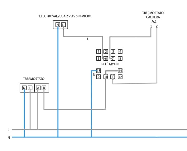 He abierto la caja eléctrica para ver si era el termostato o la electroválvula (2 vías sin micro) y he visto que era el relé. Lo he cambiado por uno nuevo (omron my4in), este se activa con el termostato, pero al parar el termostato no se desactiva.