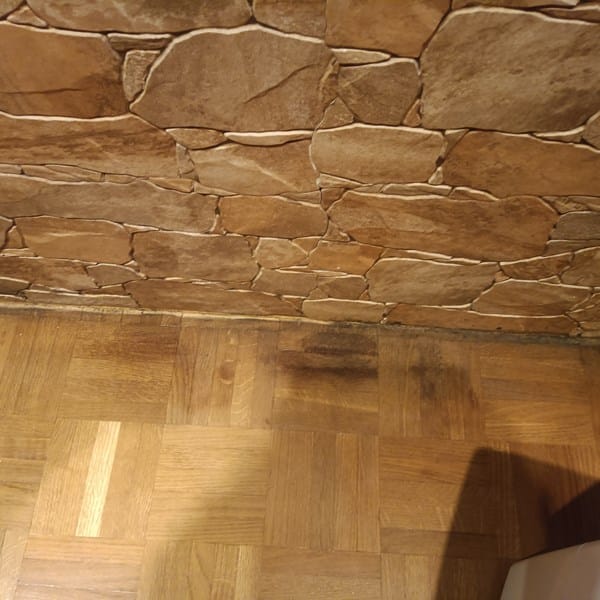 En invierno salen manchas de humedad en el parqué que está pegado a la pared que da a la fachada, es decir, lo que era terraza en su día, esa pared es mitad ventana y mitad azulejo imitación piedra.
