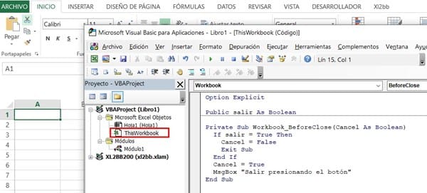 ¿Cómo puedo DESACTIVAR el control de cierre [X] de un libro de Excel habilitado para macros?