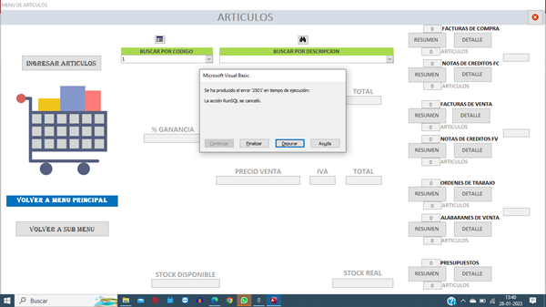 Quería pedirles que me ayuden con este error que me surgió. Cambie la versión de MS Office 2010 a la 2016 y en el formulario CONSULTA DE ARTÍCULOS, en el buscador de códigos
