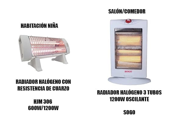 La primera estufa la uso para la habitación de la niña, ya que comparada con la otra (SOGO) esta no emite tanta luz y no dificulta el poder dormir. La otra estufa (SOGO) la uso para el salón/comedor aunque se queda pequeña para una estancia de 20m2.