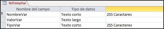 Set rs = CurrentDb.OpenRecordset("tblTempVar", dbOpenTable)
