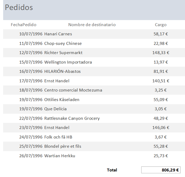 Se podría que el resultado del informe me aparezca en cuadro de lista