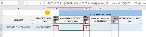 Pero me di cuenta que en la columna L (plazo 10 días) DESAPARECE al escribir en la columna I,, y el condición No debería desaparece, por que son 10 días,, debería decir "pendiente",,,