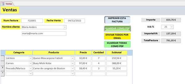 Facturas con IVA en Access (tablas e informes)