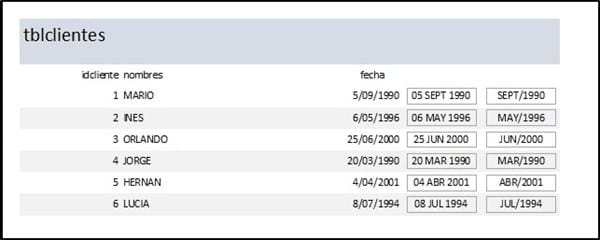 Necesito saber como personalizar una fecha. Tengo una base de datos de servicios anuales, el cual en un informe tengo un campo llamado Fecha vencimiento, necesito que me aparezca de esta forma: 16 FEB 2023. Y también necesito que me aparezca FEB/23 en otro informe de la misma base de datos.