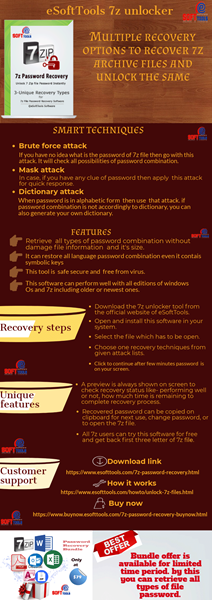 ESoftTools 7z Password Recovery software is the most trendy tool. Brute Force Attack, Mask Attack, and Dictionary Attack are the three methods available in this tool. That can recover or remove 7zip file password with a few clicks. This Unlocker Software gives a 100% accurate result. This tested tool has the ability to run on all editions of windows without any problem. Both technical and nontechnical users can simply use this tool. It has many excellent features and this tool also offers a trial pack without any cost.