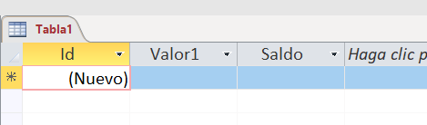 La Tabla se llama "T Datos". Los campos serían [DESCRIPCION] [IMPORTE] [SALDO]