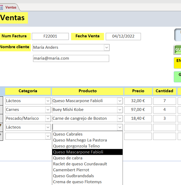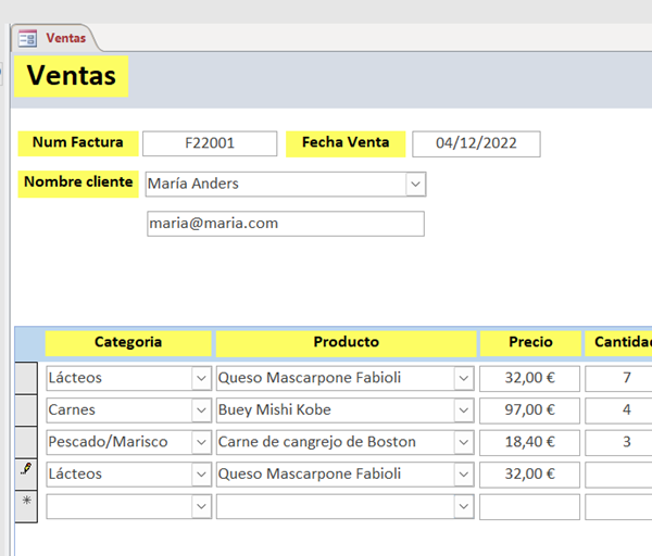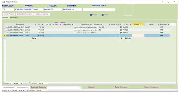 Tengo un formulario de trabajadores el cual se vincula a un subformulario de facturación de comestibles, necesito que la información de un registro, se me repita en otro en el mismo formulario. Use dbusq para traer el precio del comestible vendido pero necesito se repita en otro registro