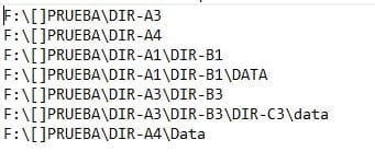 en el cual "F:\[]PRUEBA\DIR-A4\Data" no contiene ninguna de las extensiones mencionadas. Por lo que la lista de salida debería mostrar solo esa ruta.