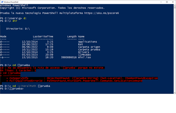 Todo esto suponiendo yo que la orden cd, aún bajo PowerShell permite cambiar de directorio...