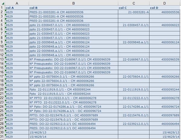 Mi preocupación es que no puedo encontrar un patrón que defina la ubicación a partir de la cual poder aplicar alguna formula excel. Además, deseo no repetir datos