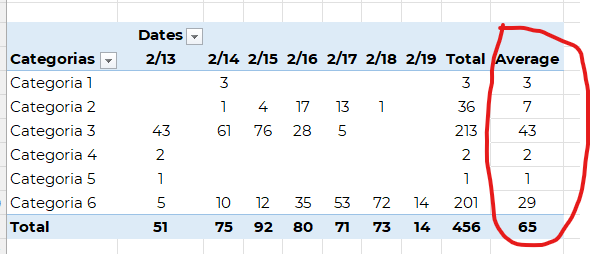 Tengo una tabla dinámica con modelo de datos donde muestro valores por columnas y al final la suma total. Además de la suma, quisiera agregar una columna del promedio de todas las columnas, actualmente lo hago con fórmula a manera de remedio rápido, pero implica tener que ajustar manualmente cada que se agrega una columna nueva. Pensaría que esto se hace con un campo calculado en una tabla dinámica normal, pero no me es permitido al ser una con modelo de datos.