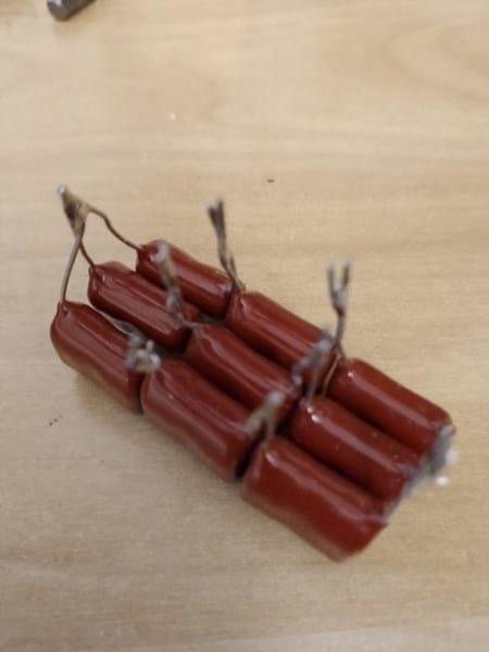Necesito comprender en que se diferencia lo siguiente. Si tengo 9 capacitores de 10 nf por 1600v cada uno. Si hago 3 grupos de 3 capacitores cada uno y los uno en serie y luego esos 3 grupos los uno en paralelo meda 10nf, lo mismo que uno solo. ¿Qué diferencia hay a la hora de montarlo en un circuito? Si monto un circuito con uno y otro con los 9 cuál sería la diferencia.