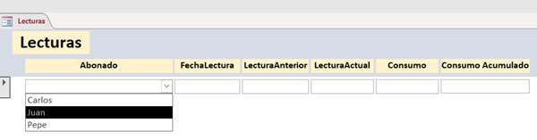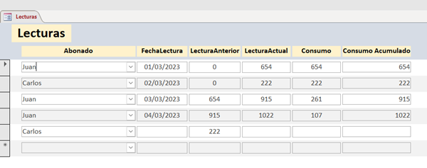 Estoy intentando hacer un pequeño formulario de Access para poder llevar el registro de las operaciones de mantenimiento, para mi trabajo, en el cual hay que coger lecturas de unos consumos mensualmente, por ejemplo "Lectura ant comb" que hace referencia a la lectura de combustible tomada el mes anterior, en el caso de ser el primer registro sería cero y "Lectura act com" que hace referencia a la lectura de combustible tomada en el mes actual y calcular el consumo de combustible habido en el periodo, no sé cómo hacer para que me aparezca en el siguiente registro, es decir al mes siguiente la "Lectura ant comb" con los datos de la "Lectura act comb" del registro anterior, para no tener que copiar los datos manualmente.
