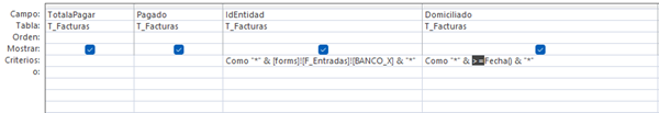 En la misma consulta tengo más criterios idénticos al campo IdEntidad pero no se si es posible que con el mismo método pueda hacerlo en el campo Domiciliado que es de tipo fecha, seguro que la sintaxis que he puesto no es correcta.