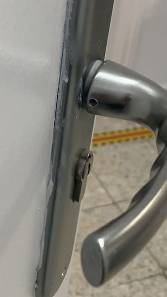 Tengo que quitar esta manilla y he visto este agujero el cual parece ser el prisionero. Lo intente con allen pero no sale. ¿Qué puedo hacer? ¿Cómo puedo quitar la manilla?