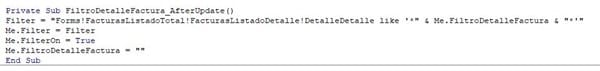 Tengo un formulario "Facturas Listado Total" con un subformulario "Facturas Listado Detalle" y este contiene un campo "Detalle Detalle", con el detalle de la factura.