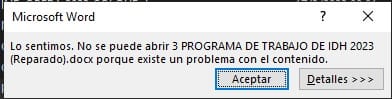 Word 2003 no pudo leer este documento. Puede que esté dañado.