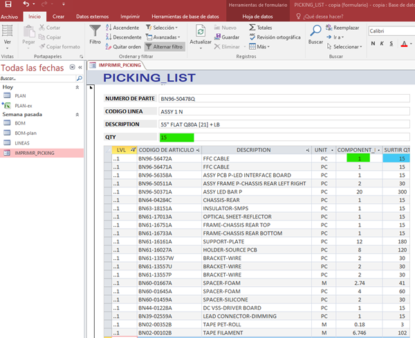 SURTIR: (COMPONENTES) * (QTY), en este apartado que se calcule automático sin necesidad de realizar la operación de manera manual.