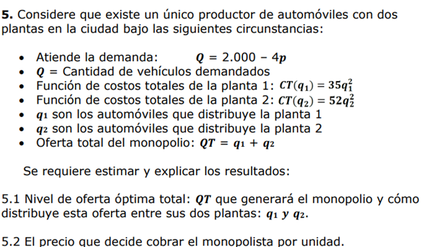 Considere que existe un único productor de automóviles con dos plantas en la ciudad bajo las siguientes circunstancias: