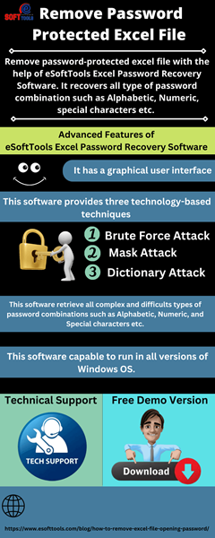 All Excel files' passwords can be recovered with eSoftTools Excel Password Remover Software. This software can be used with all versions of Excel, including xlsx, .xlsx, .xls, .xla, .xlam, and xltm. If you can't remember your Excel sheet password then you should download this software. No matter how strong the password is, it can be recovered in three ways, namely brute force attack, mask attack, and dictionary attack techniques. You can get more information about the functions of the software by using the free trial version of the software.
