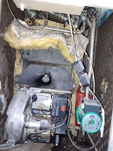 THEMA Nox F25. Ruido de golpe en válvula de tres vías. El fallo no es la válvula inversora sino el circuito impreso que le manda la señal a la válvula. También hace ruido al arrancar, y esto puede ser debido a la regulación de la presión mínima del quemador, la posición de las bujías de encendido que estén alejadas entre sí y hagan arco con el quemador y puede ser la propia deformación de la tapa de la cámara de la combustión producida por la aspiración del extractor. Para evitar esto último se empezó a colocar un burlete, entre las tapas estanca y de carcasa, de fábrica. Puede que la caldera no tuviera montado este burlete y haga ese ruido.