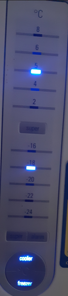 Hoy he observado que el combi no enfriaba como debe ser y me he puesto a comprobarlo .Lo tengo programado a 6º la parte del frigo y a -18 el congelador como se ve en la foto el display no parpadea, pero en el interior del frigo y en el congelador he puesto un termómetro que marca en la parte del frigo 14º y en el congelador marca -9º. Por donde puedo meterle mano o alguien me puede explicar porque puede ser . Gracias