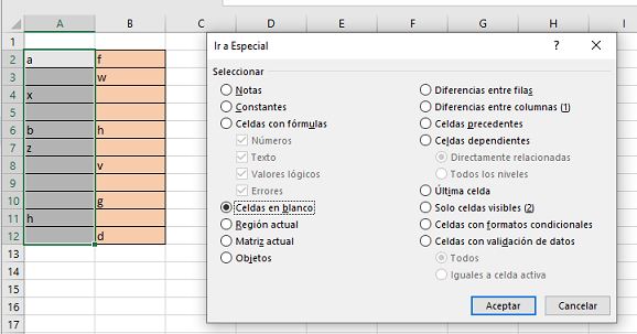 Dada una Excel con celdas en blanco, modificarla para que no haya celdas en blanco